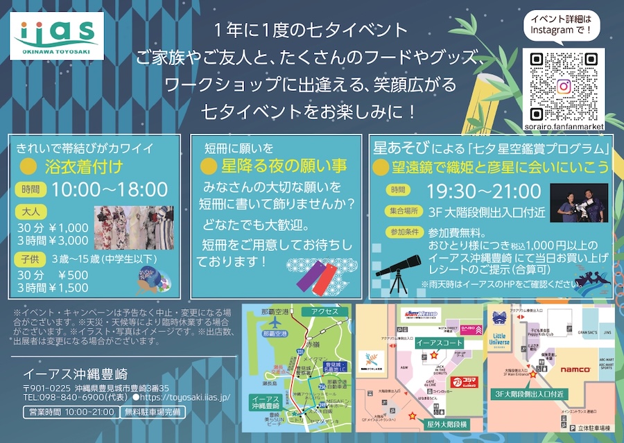 2025年7月5日(土)と7月6日(日)の2日間、豊見城市にあるイーアス沖縄豊崎にて「七夕ファンファンマーケット」が開催される。