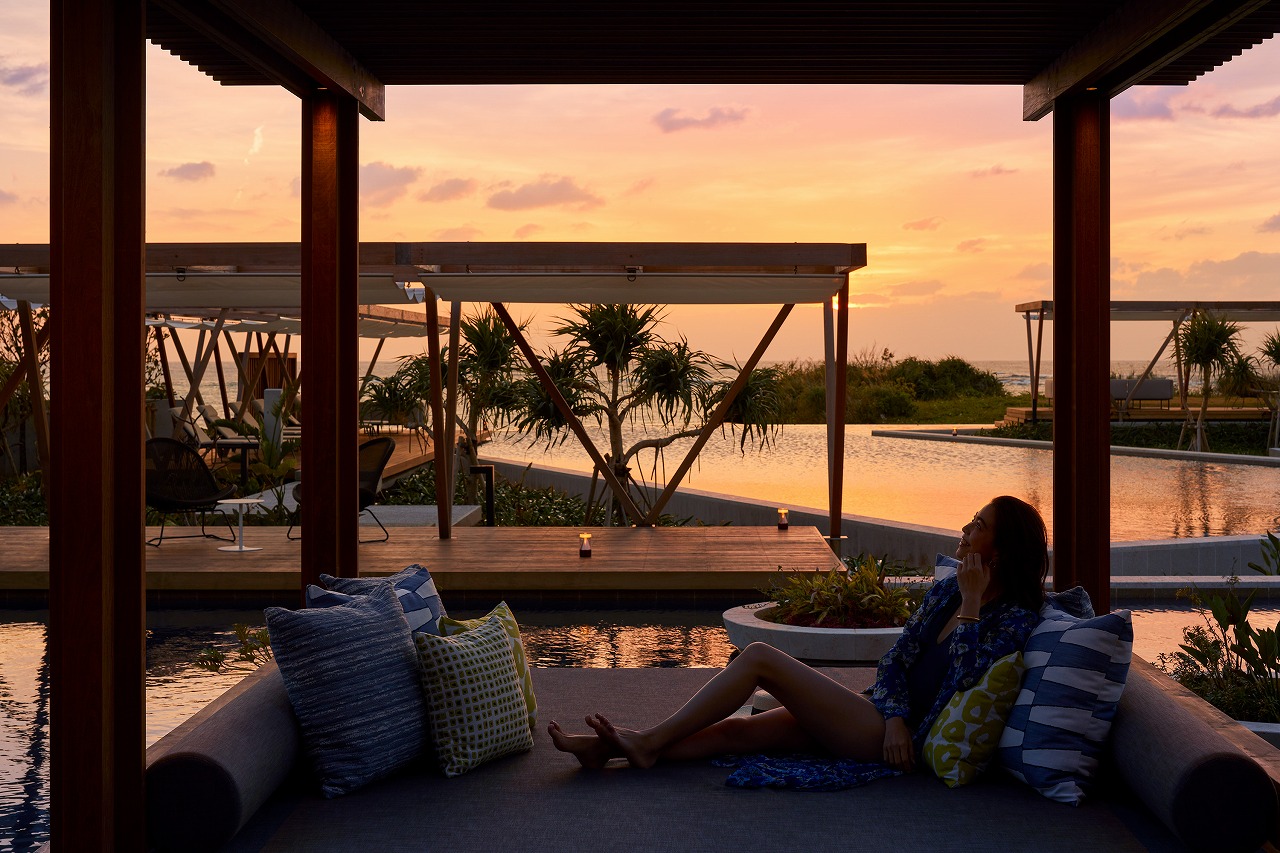 海にせり出たインフィニティプールは、夕暮れ時にはサンセットを眺められる特等席。日没をすぎるとランタンが置かれるプールサイド、プール水面に映る光が揺れる様子も幻想的な光景を演出。