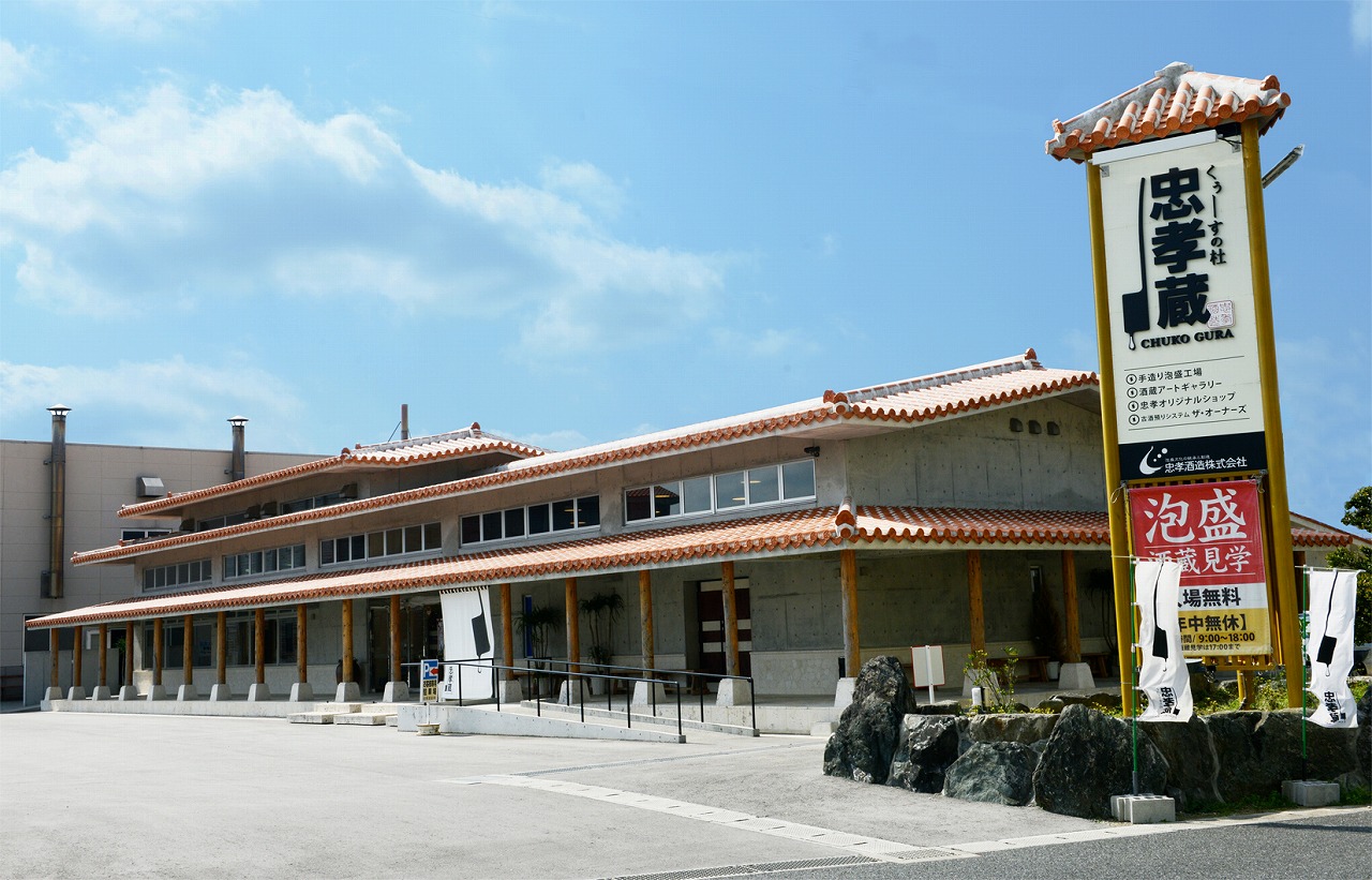 敷地内には県内で首里城に次ぐ高さを誇る「木造古酒蔵」があり、巨大な貯蔵タンクと800個の甕が並ぶ様は圧巻。泡盛メーカー初となる自社窯「忠孝窯」では、自社窯製作の「琉球城焼」ができるまでの工程が聞けるほか、酒器や花器などの購入もできる。