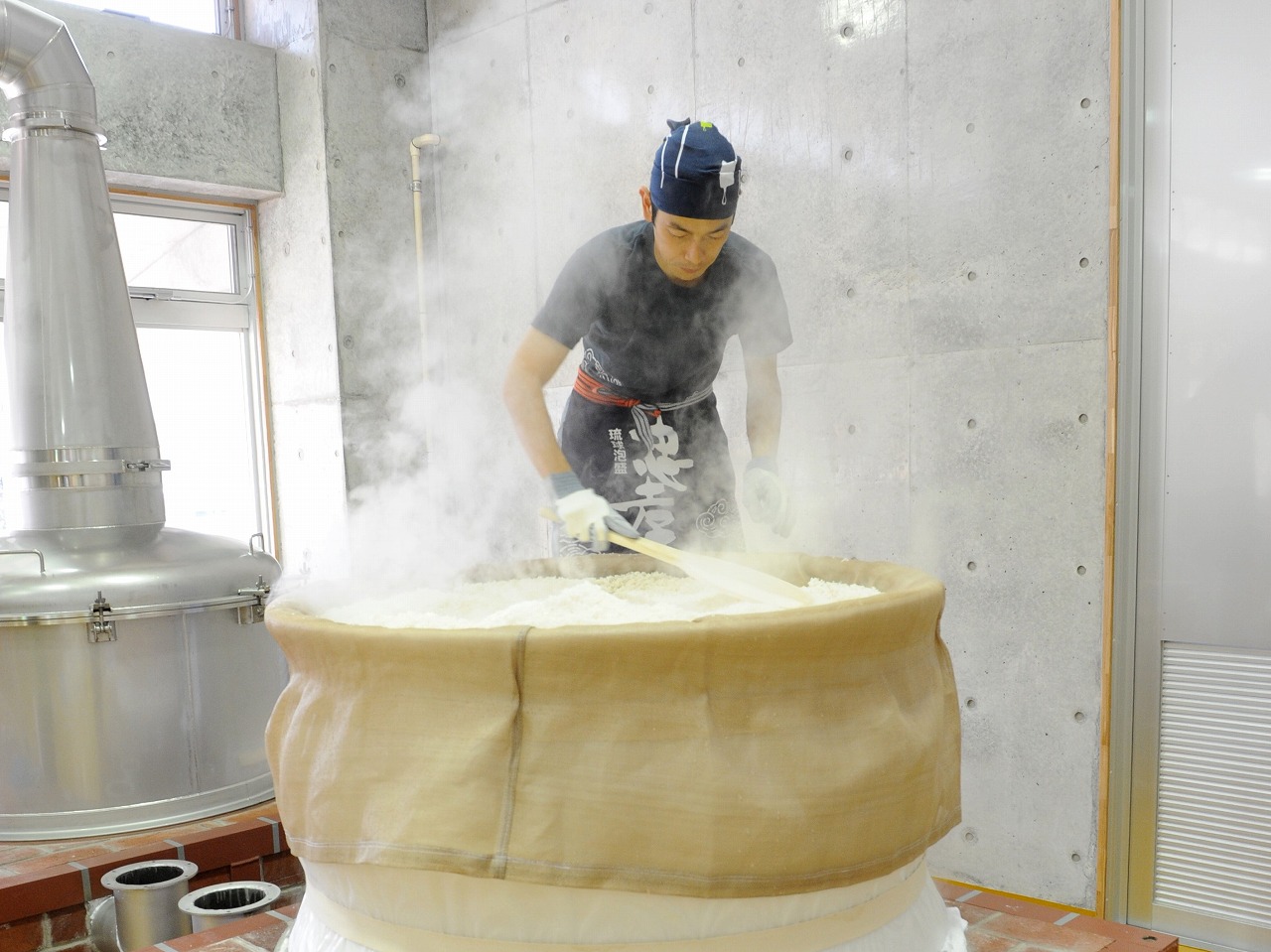 本社の道向かいに建てられた「くぅーすの杜 忠孝蔵」ではスタッフがガイドとなり、昔ながらの泡盛造りが再現された”手造り泡盛工場”をはじめ3つの施設を巡り、泡盛の造り方や蔵元のこだわりなどを説明してくれる。