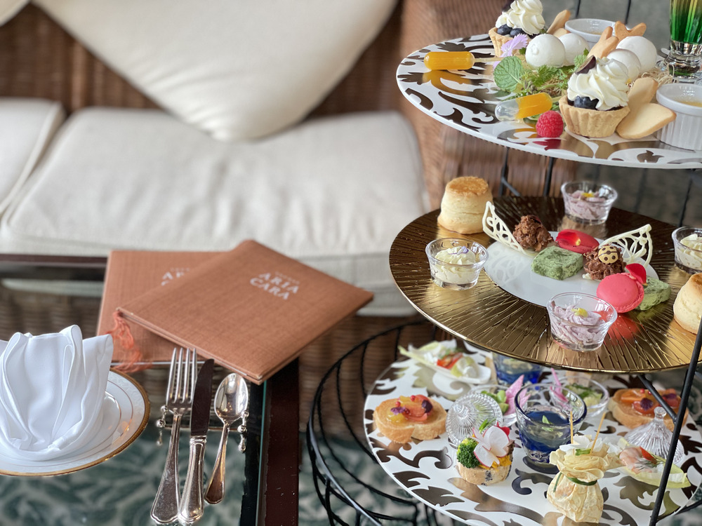 2021年6月30日(水)までの期間中は「オアシス」をテーマに、生命・水・草木・太陽・息吹をイメージした料理とスイーツがオリジナルティースタンドで楽しめる。