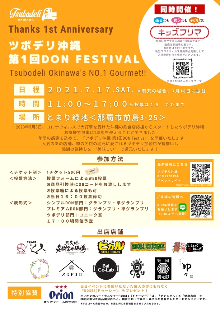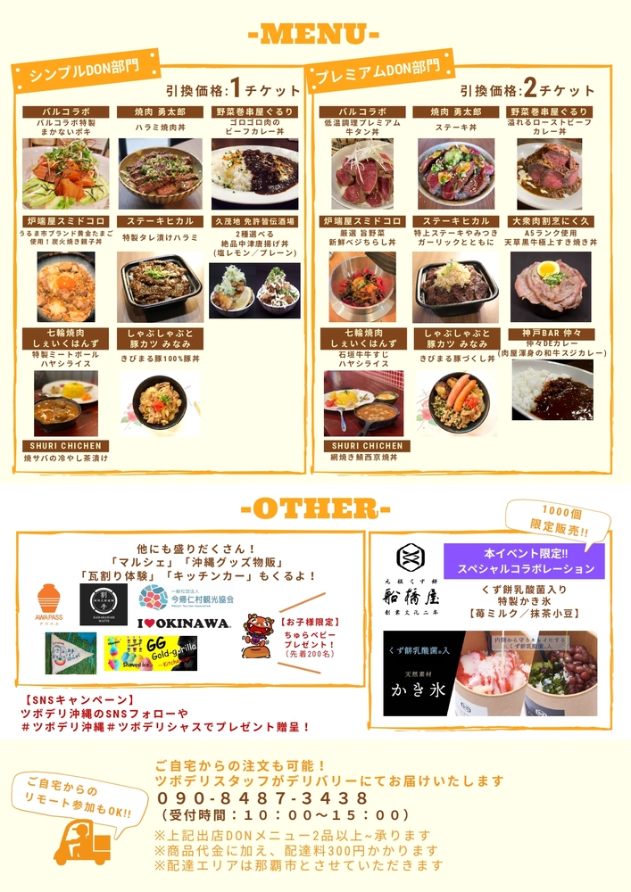 イベント来場者にはツボデリ沖縄で利用できるクーポンや子ども限定のプレゼントがあるほか、SNSキャンペーンも実施。また会場に行けない人も、ツボデリ沖縄からデリバリー注文をしてWEB投票ができるのも嬉しい仕組みだ。