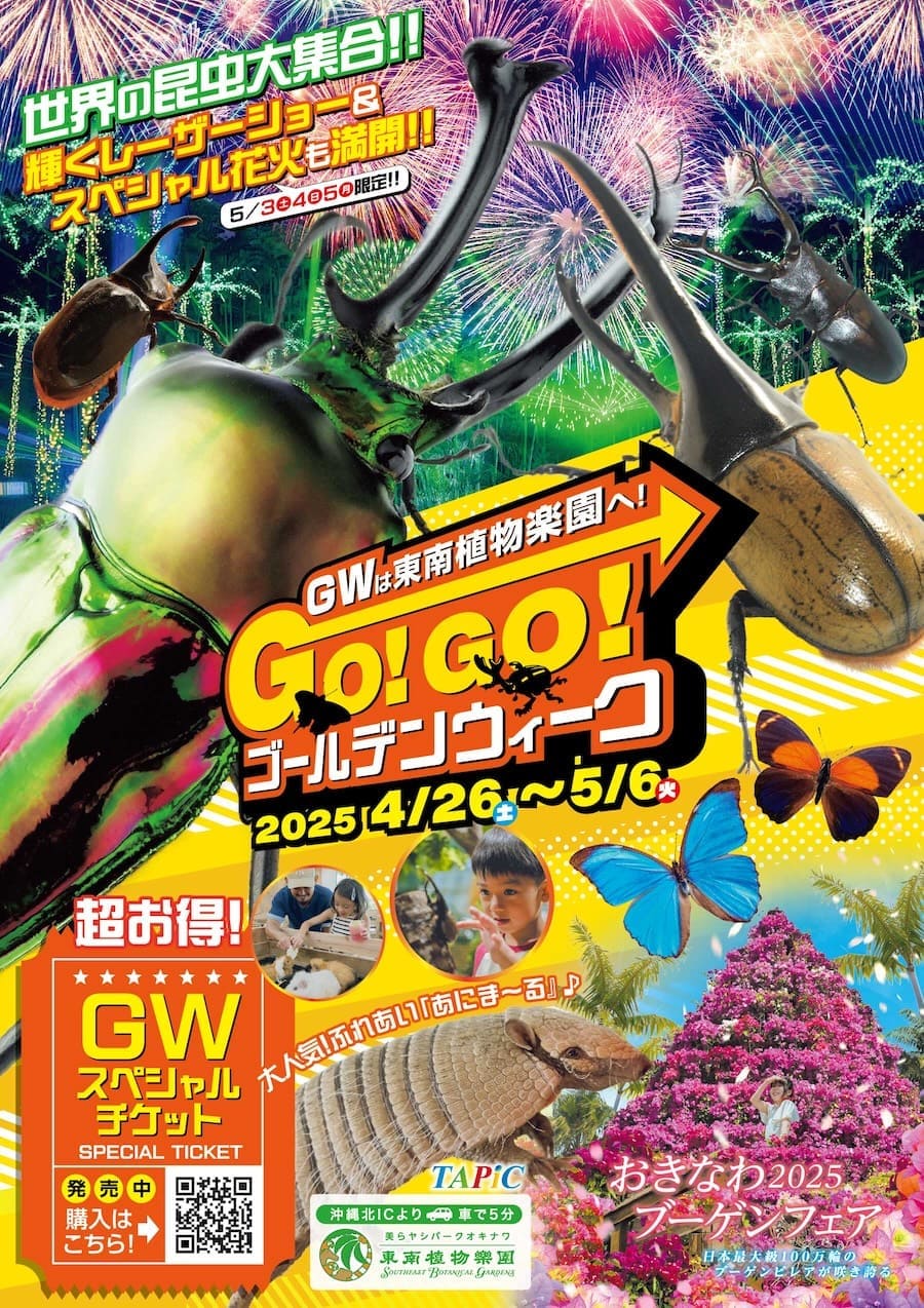 沖縄市にある日本最大級の屋外植物園「東南植物楽園」では、2025年4月26日(土)~5月6日(火・振休)の期間中に「GO!GO!ゴールデンウィーク2025」が開催される。
