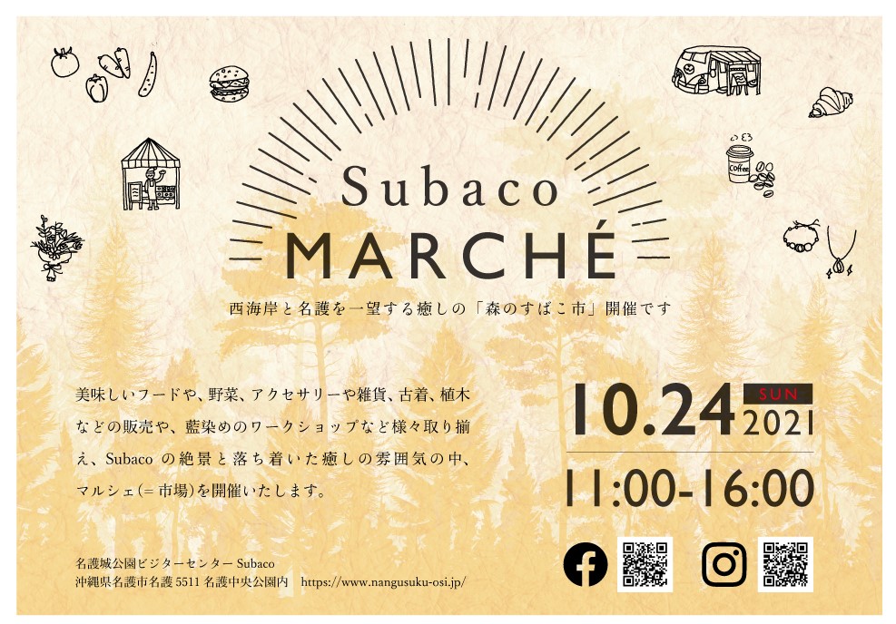 名護グスク公園内にある名護城公園ビジターセンターSubacoでは、2021年10月24日(日)に「SubacoMARCHE-森のすばこ市-」を開催。