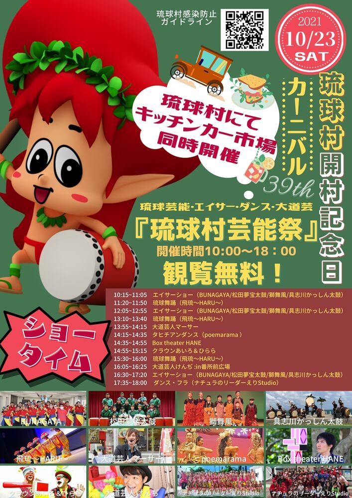 2021年10月23日(土)、恩納村にある琉球村でステージショーやキッチンカーが集う「琉球村芸能祭2021」が開催される。