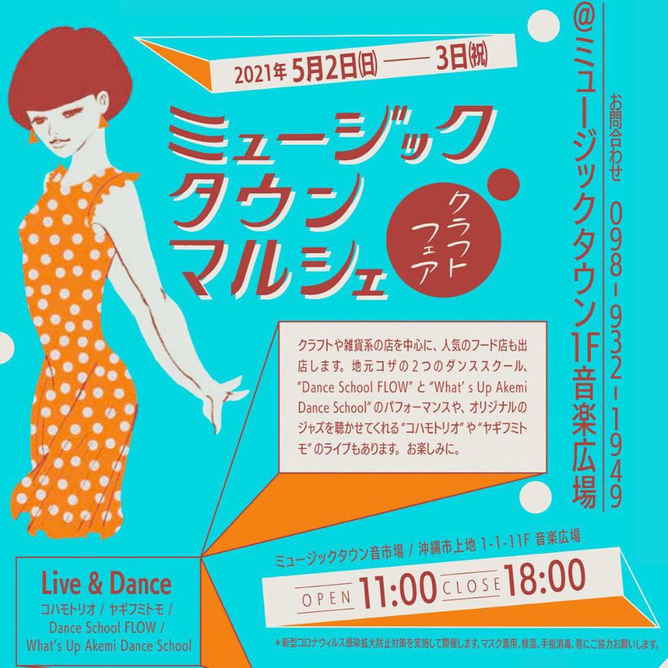 ミュージックタウンマルシェと称して、沖縄市ミュージックタウン音市場でクラフトフェアが、2021年5月2日(日)~3日(月・祝)に開催。