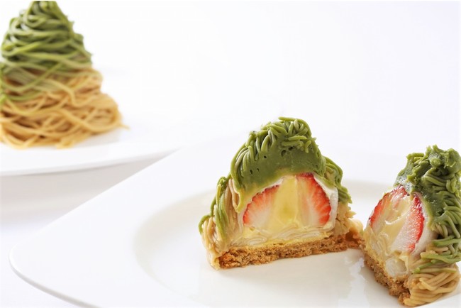 芳醇で濃厚な和栗のクリームとほろ苦い抹茶の風味に、ベリームーンの香り高く爽やかな甘さのいちごが絶妙に重なり合う。