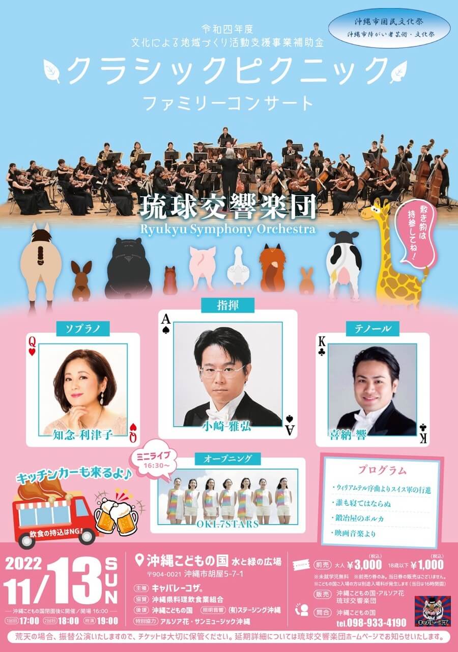 2022年11月13日(日)、沖縄こどもの国の水と緑の広場で琉球交響楽団による「クラシックピクニック ファミリーコンサート」が開催される。