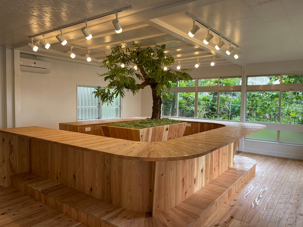 閑静な住宅街の中に佇む、沖縄独自の古民家をリノベーションした店舗は、実際に長い間住居として使われていた場所。約50坪の広々とした店内には、畳席とモダンな円卓のカウンターテーブル席を用意。