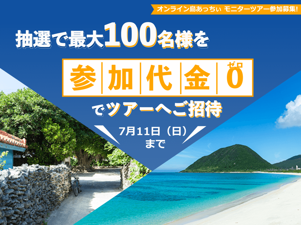 毎年、沖縄県内の離島モニターツアーを実施している「島あっちぃ」が、おうちにいながら気軽に旅行気分を楽しめる「無料でオンライン島あっちぃツアー」のモニターを募集中。