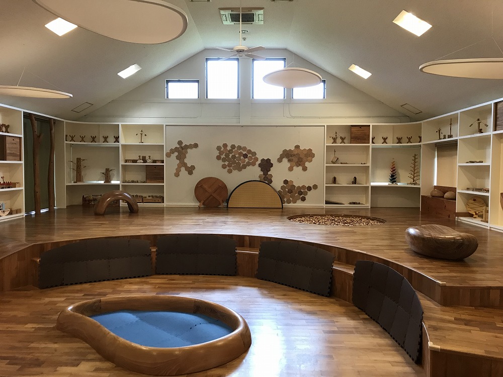 壁一面には国頭村をはじめとする県内の職人さんが、木材を使って制作したおもちゃが並んでおり、自由に触れたり、持ち上げたり、遊んだりすることで、木の温もりややんばるの大自然を体感する時間が過ごせそう。