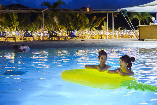 10月は沖縄県内各地で屋外プールやビーチの泳ぎ納めの季節。まだまだ暑さが残る沖縄の夜を楽しみたいという声に応え、通常18時までの遊泳のところ、21時まで延長。