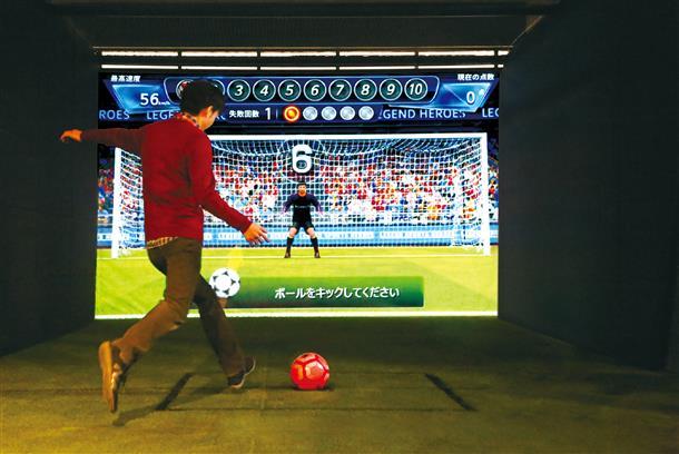 館内は4つのゾーンがあり、24種類のアクティビティを用意。「レジェンドサッカー」はPK&FKでゴールを決めるゲーム。プレイヤーのコントロールとスピードが鍵を握る。