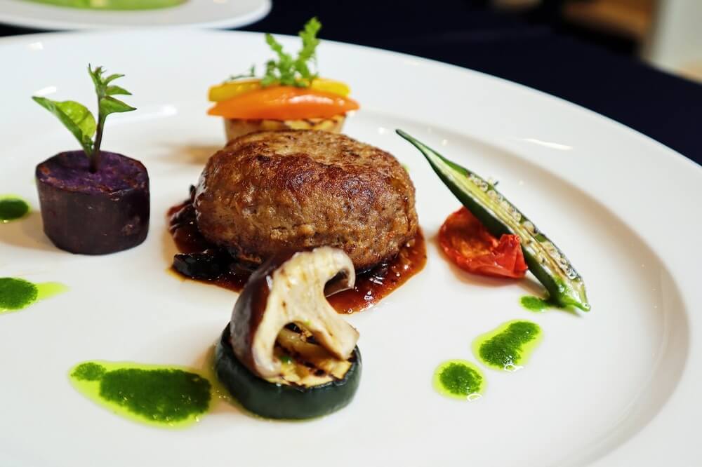 やんばるの森体験ツアーの前後にはホテルのレストランにて豪華なランチを用意。和牛とアグー豚のハンバーグステーキや、真鯛のポワレなど4種類からメイン料理が選べるセットメニューには、スープとサラダ、パンまたはライス、珈琲か紅茶が付く。シェフがつくる多彩なランチに舌鼓を打つこと、間違いなし。