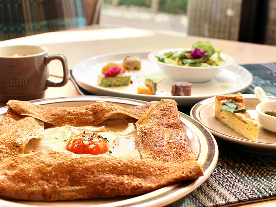オーダーランチブッフェでは県内では珍しいガレットをはじめ、さまざまな料理が食べ放題。