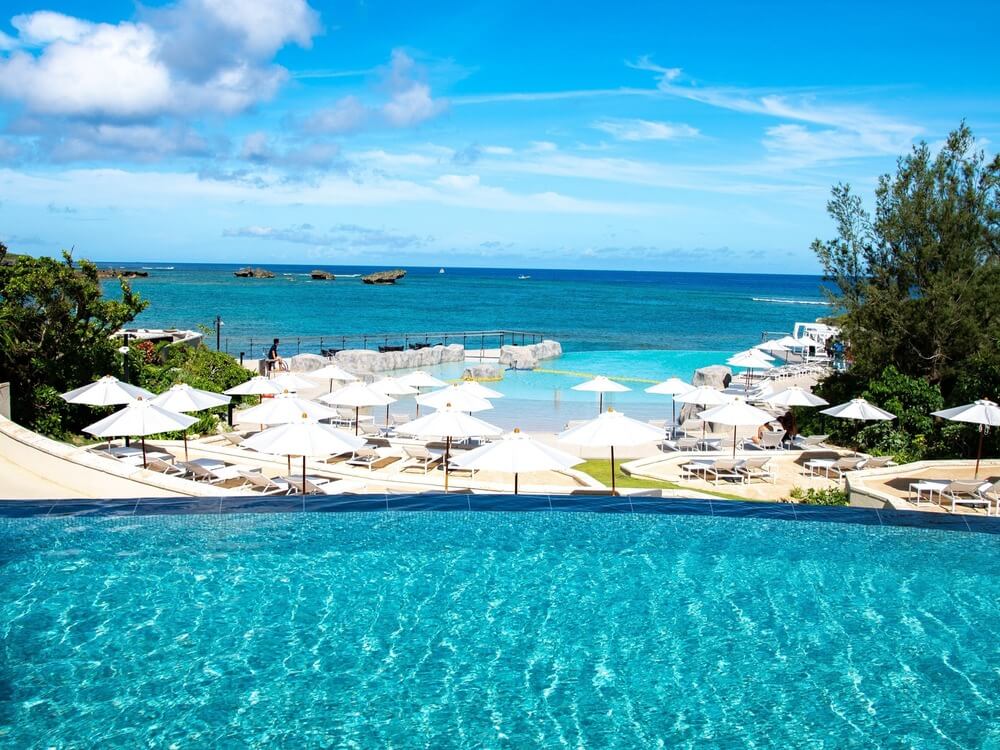 「グスクプール」と「ラグーン」、海面とそれぞれに段差を設けており、プールが海まで続くようなインフィニティな光景は絶景だ。