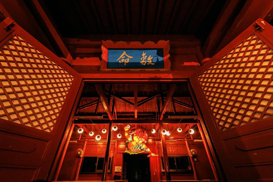 琉球王朝時代の街並みを再現した体験王国むら咲むらに逃げ込んだ、昔から沖縄で語り継がれてきた妖怪たちを見つけていく”沖縄の夜の妖怪さがし”イベント。