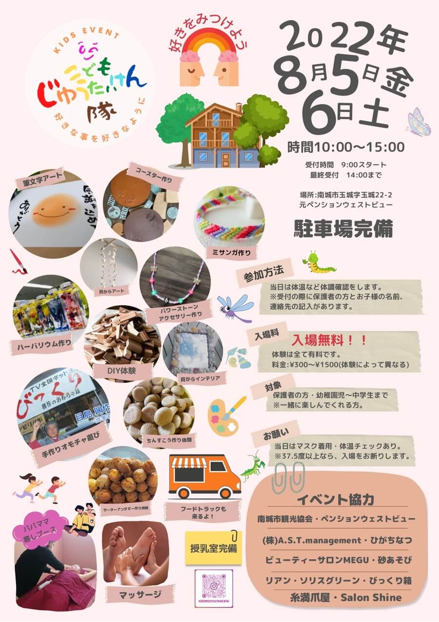 2022年8月5日(金)・6日(土)、南城市にて夏休み体験イベント「こどもじゆうたいけん隊」が開催する。