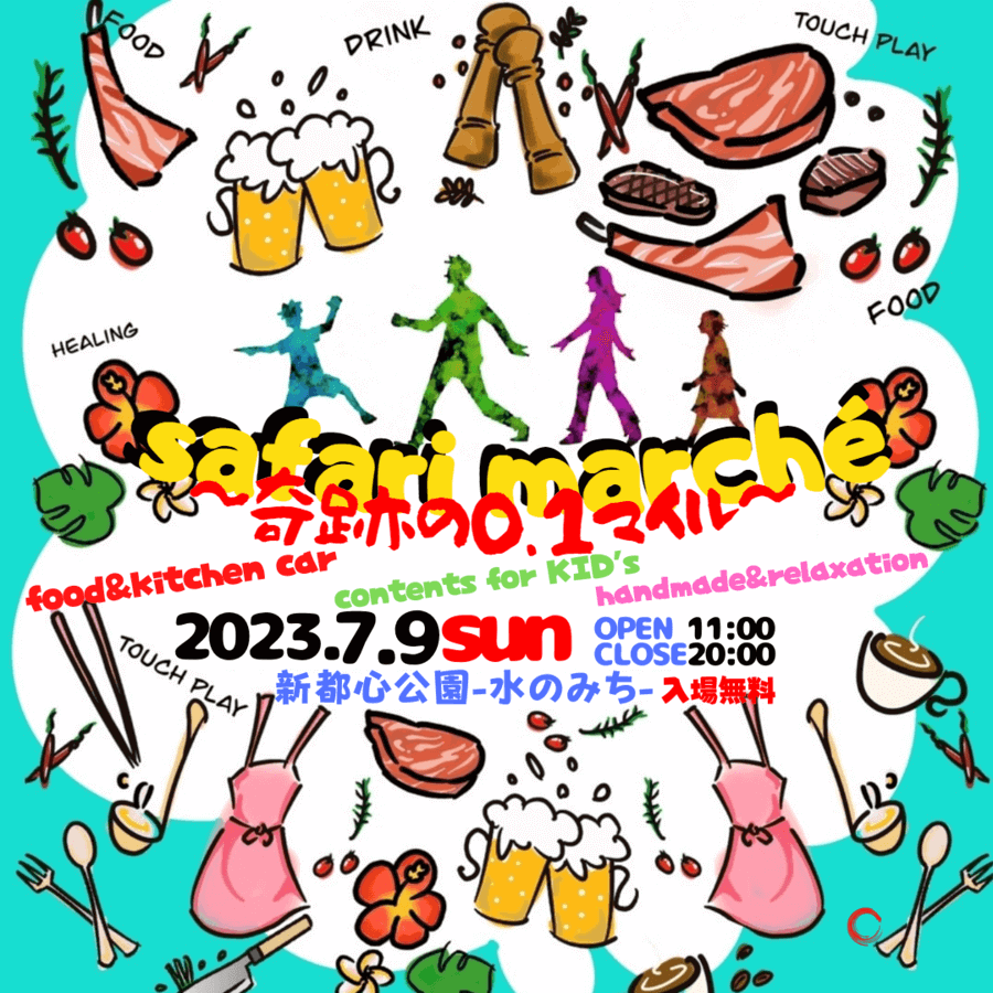 2023年7月9日(日)、那覇市にある新都心公園・水の道「霧の噴水」にて、誰でも一日中楽しめる様々なコンテンツが揃った「safari marché~奇跡の0.1マイル~」が開催。