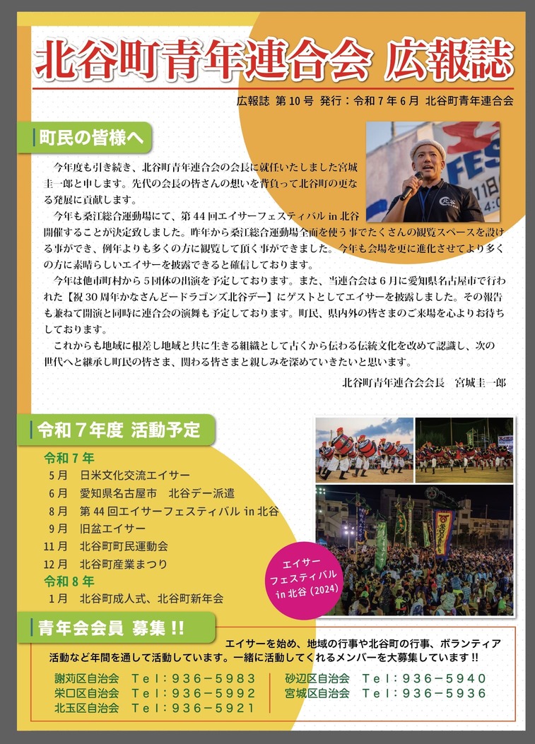 「エイサーフェスティバル in 北谷」を主催している北谷町青年連合会は、1987年に結成されて以降、北谷町だけではなく、中部地区全体を活動範囲に広げて活動している。海外でもエイサーを披露したりと経験豊富な、歴史あるエイサー団体だ。