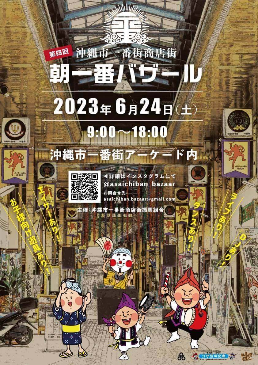 2023年6月24日(土)、沖縄市一番街商店街アーケード内にて「第4回 朝一番バザール」が開催される。