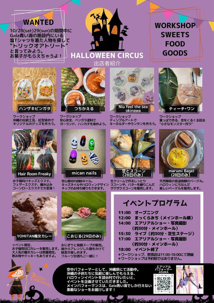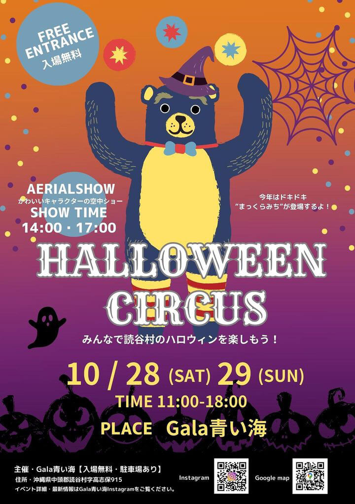 2023年10月28日(土)・29日(日)、読谷村にある複合施設、Gala 青い海で「HALLOWEEN CIRCUS」が開催される。