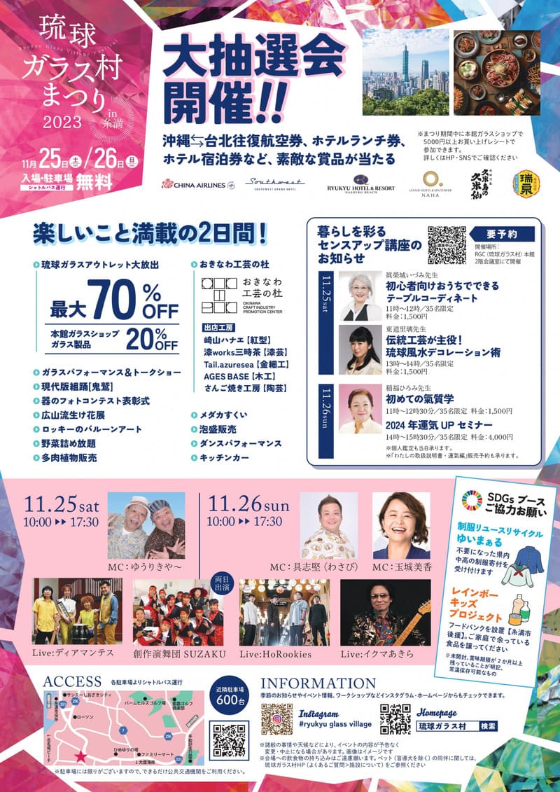 2023年11月25日(土)・26日(日)、糸満市の琉球ガラス村にて「琉球ガラス村まつり2023」が開催される。