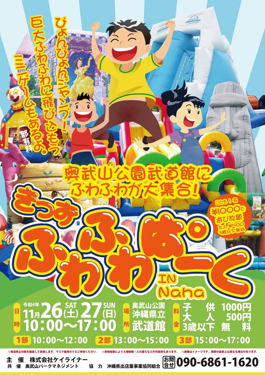2022年11月26日(土)・27日(日)の2日間、那覇市にある沖縄県立武道館で「きっずふわふわぱーく」が開催される。