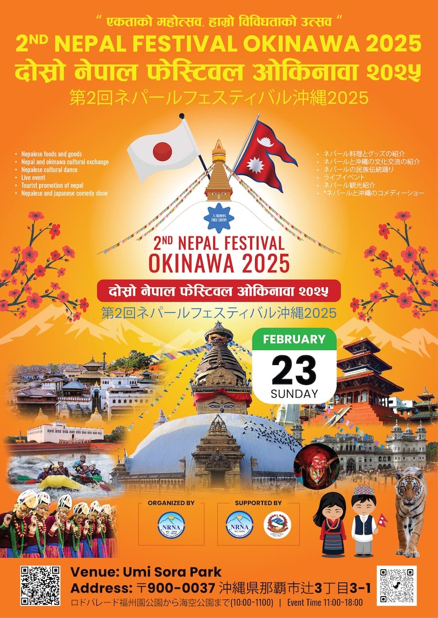 沖縄県で暮らすネパール人コミュニティーが合同で開催する一大イベント。当日は、ネパール料理が楽しめるだけでなく文化交流や観光紹介、ネパールのスパイス・民族衣装の展示などが行われる。