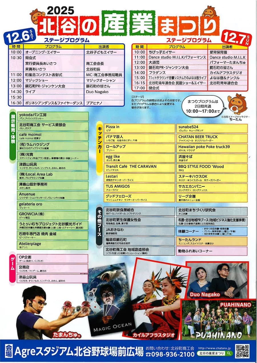 2025年12月6日(土)・7日(日)、Agreスタジアム北谷野球場前広場で「2025北谷の産業まつり」が開催される。
