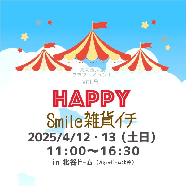 2025年4月12日(土)・13(日)の2日間、「Happy Smile雑貨イチ vol.9」がAgreドーム北谷で開催される。