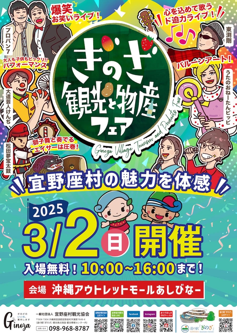 2025年3月2日(日)、豊見城市の沖縄アウトレットモールあしびなーで「ぎのざ観光と物産フェア」が開催される。