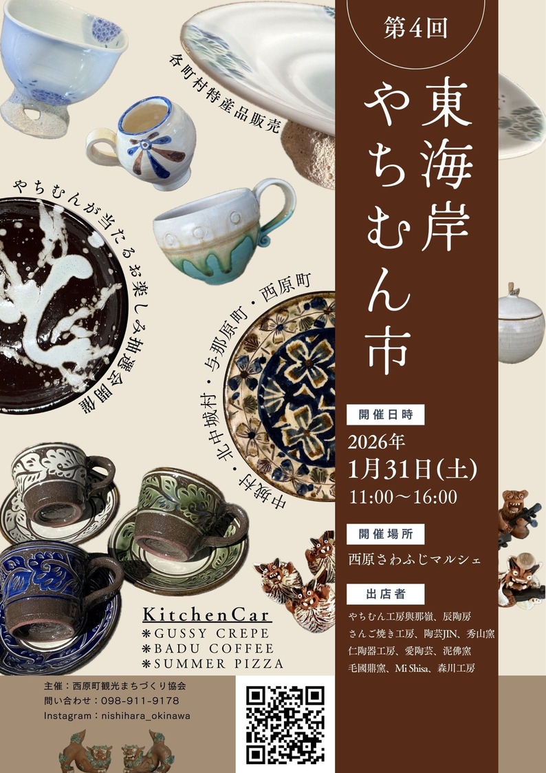 2026年1月31日(土)、西原町にある西原さわふじマルシェで「第4回 東海岸やちむん市」が開催される。