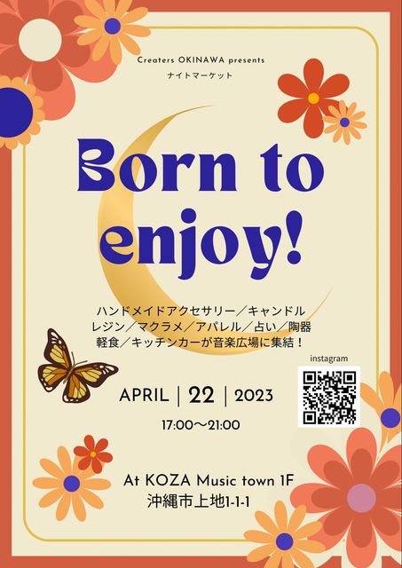 2023年4月22日(土)、沖縄市のミュージックタウン音市場で「ナイトマーケット Born to enjoy!」が開催される。
