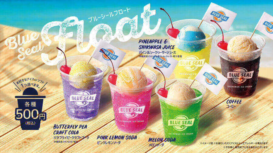 豊崎店限定で販売する「ブルーシールフロート」も新登場。ドリンクは5種類から選べ、好きなアイスやソフトと組み合わせ。見た目もカラフルでSNS映え間違いなしのイチ押しメニューだ。