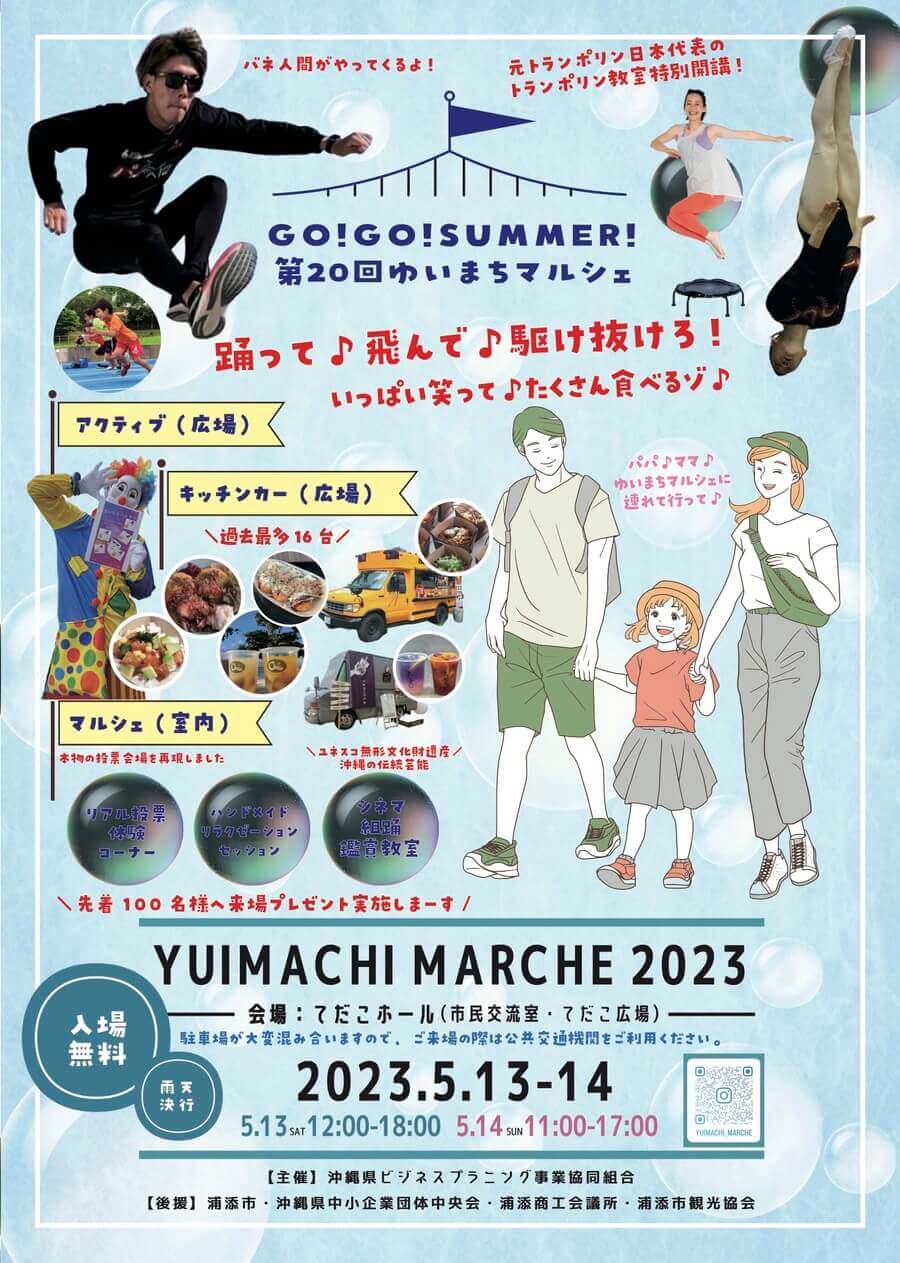 2023年5月13日(土)・14日(日)に、浦添市のアイム・ユニバース てだこホールにて「第20回ゆいまちマルシェ」が開催される。
