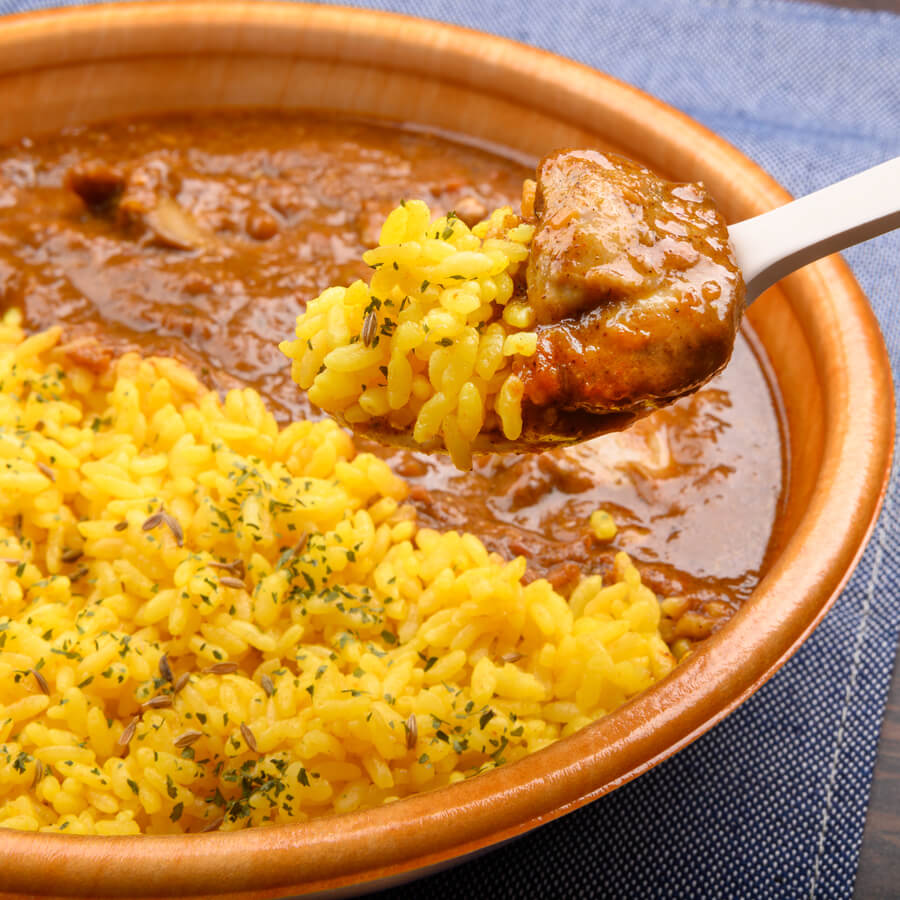 スパイシーカレーゴカルナ 監修 「特製バターチキンカレー」今回は、ゴカルナの看板商品「特製バターチキンカレー」を再現。ゴカルナならではのスパイス感、そして野菜の旨味が感じられるカレーに仕⽴てられている。本家にならい、チキンもゴロッと⼊っているのもポイント。