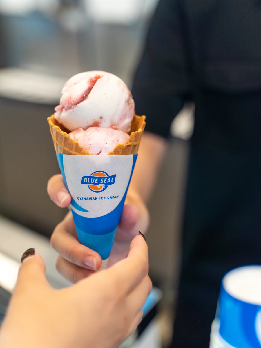 カラフルでキュートな見た目は写真映えも抜群なので、ブルーシールの看板を背景に写真を撮ってはいかが。