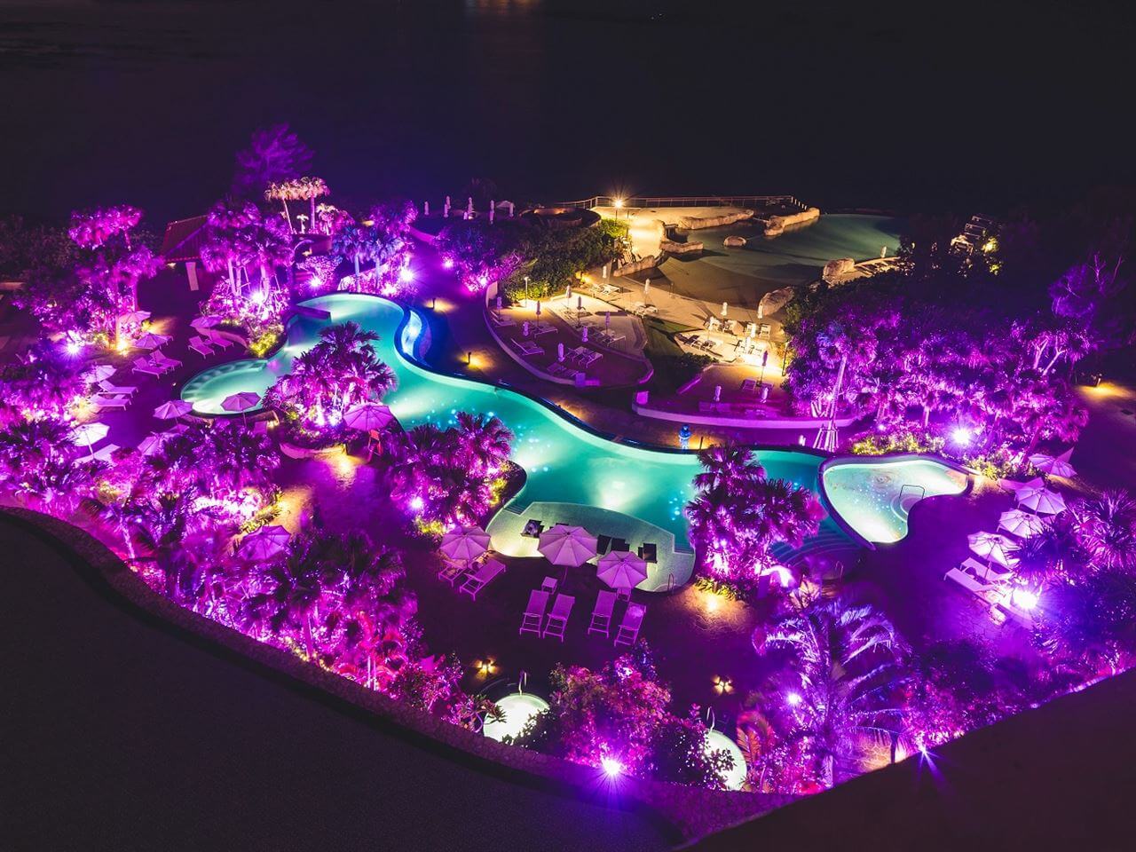 テーマは金曜日がラテンミュージック、土曜日はポップス、日曜日はロックミュージックで、音楽に合わせてプールのライトアップも変わる。