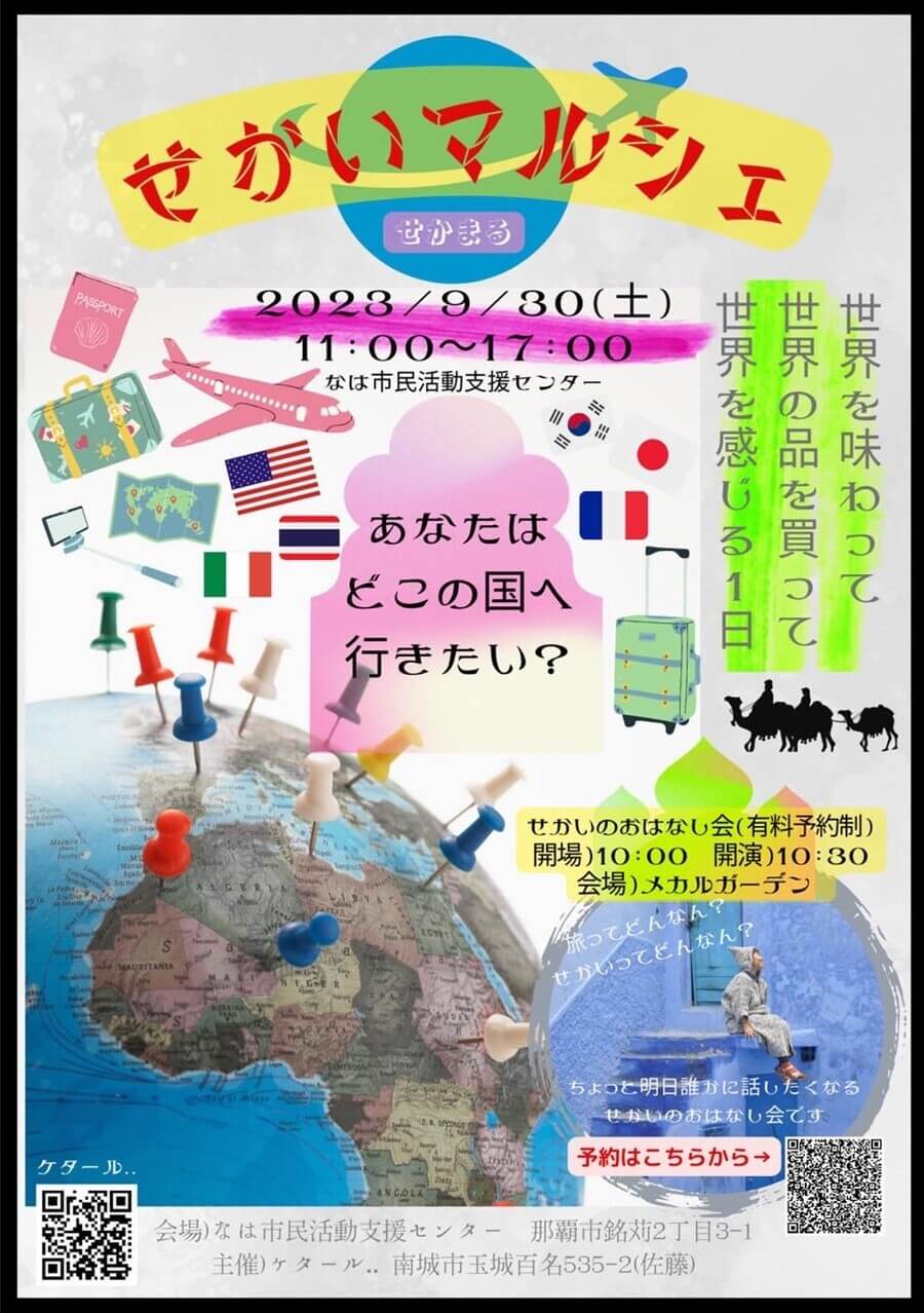 2023年9月30日(土)、なは市民協働プラザで「せかいマルシェ」が開催される。