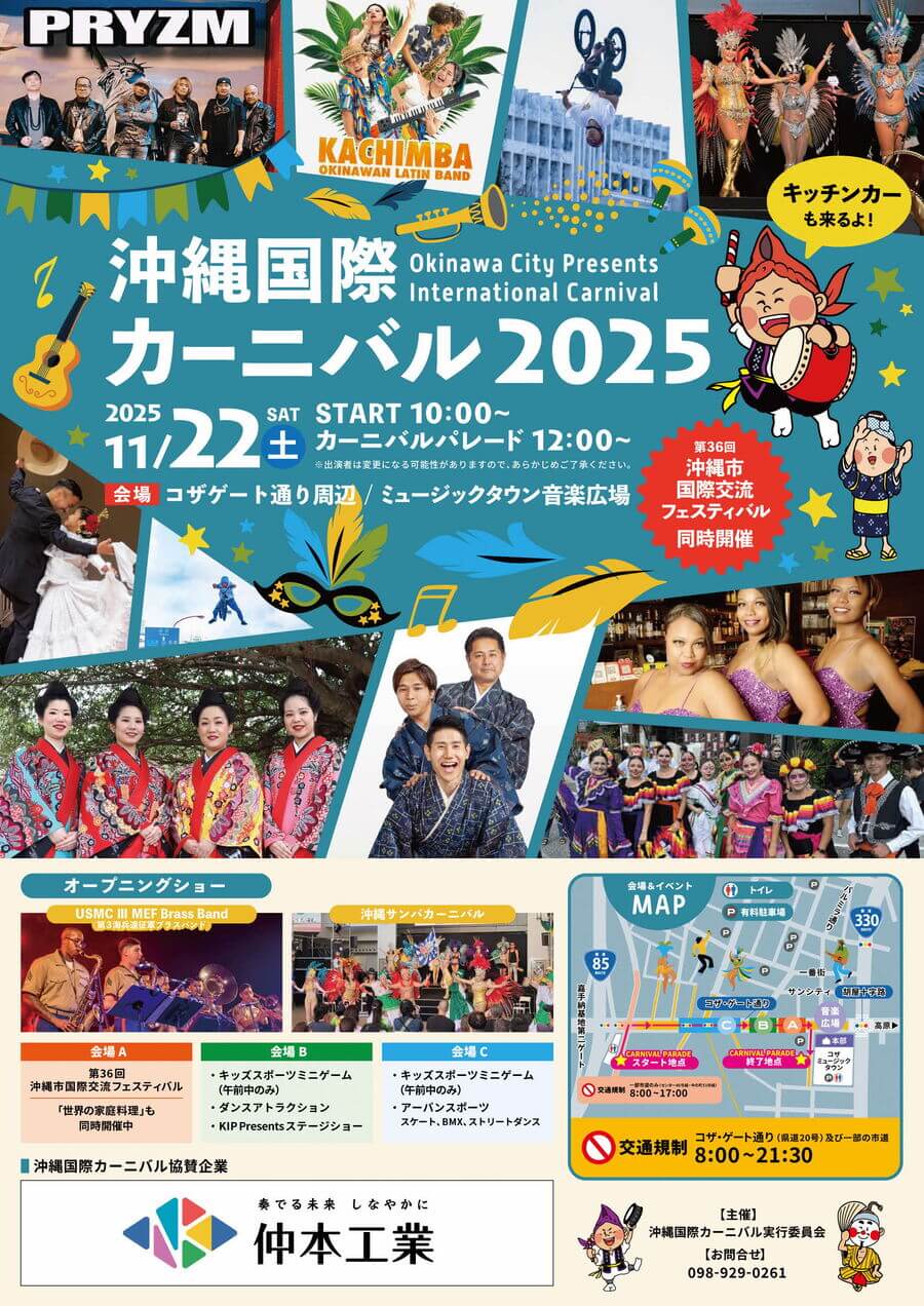 コザ・ミュージックタウン音楽市場を中心に、コザ・ゲート通りにて2025年11月22日(土)に南米の音楽が鳴り響く。力強いサンバのリズムとともに陽気な国際人たちが音楽で盛り上げてくれるだろう。