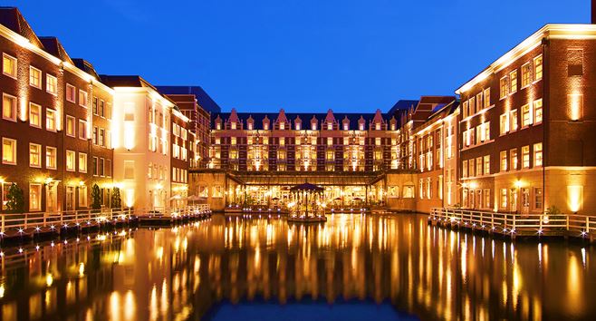 ハウステンボス敷地内にあり、アトラクションエリアから歩いてアクセス可能。翌朝には開園前で人がまばらなパークを散策してみては。