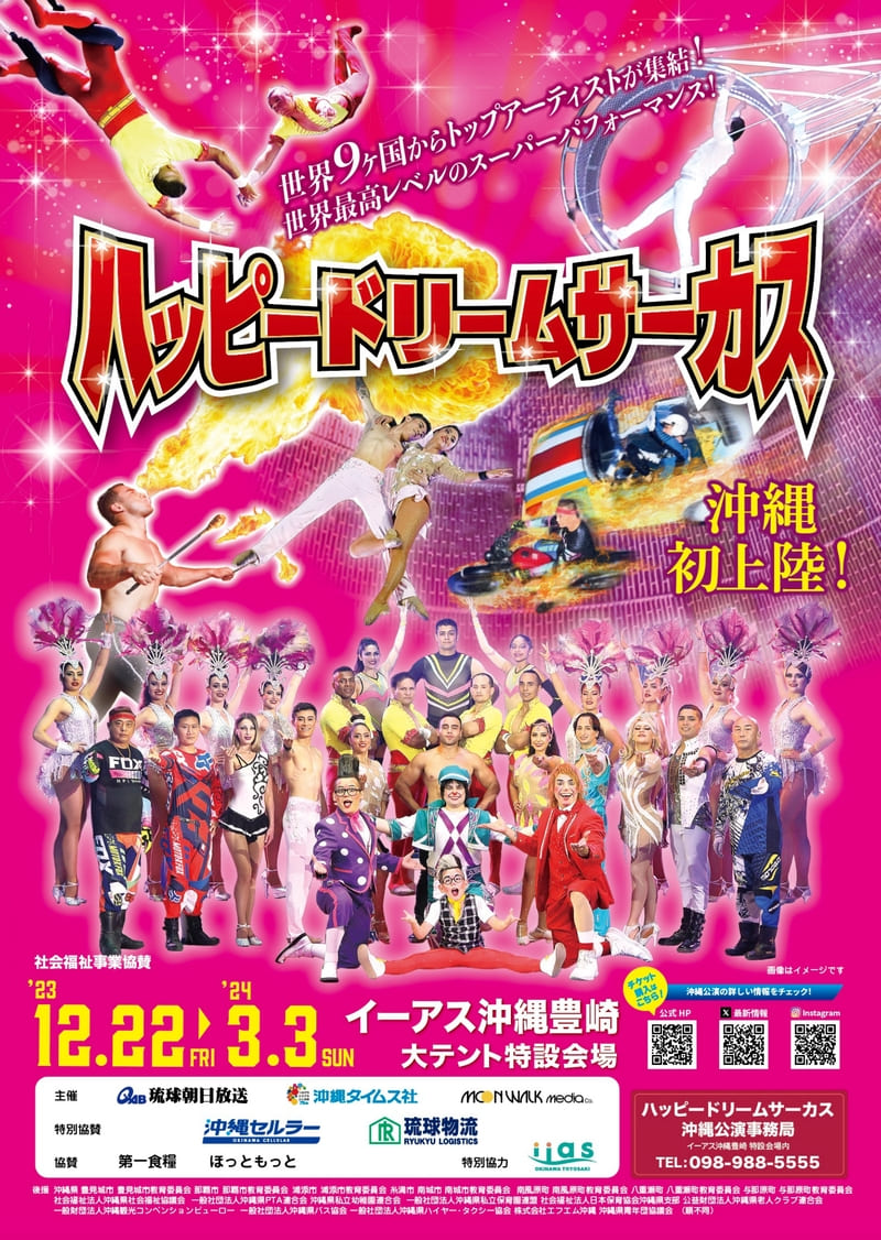 2023年12月22日(金)~2024年3月3日(日)、イーアス沖縄豊崎の特設会場にて「ハッピードリームサーカス」が開催。今回が沖縄初上陸となる。