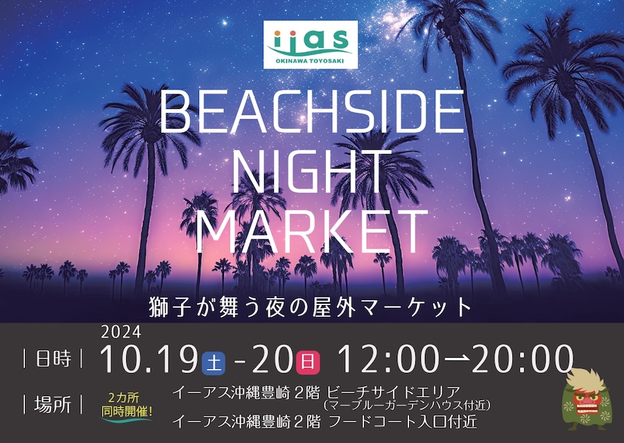 2024年10月19日(土)と20日(日)の2日間、豊見城市のイーアス沖縄豊崎にて「BEACHSIDE NIGHT MARKET」が開催される。