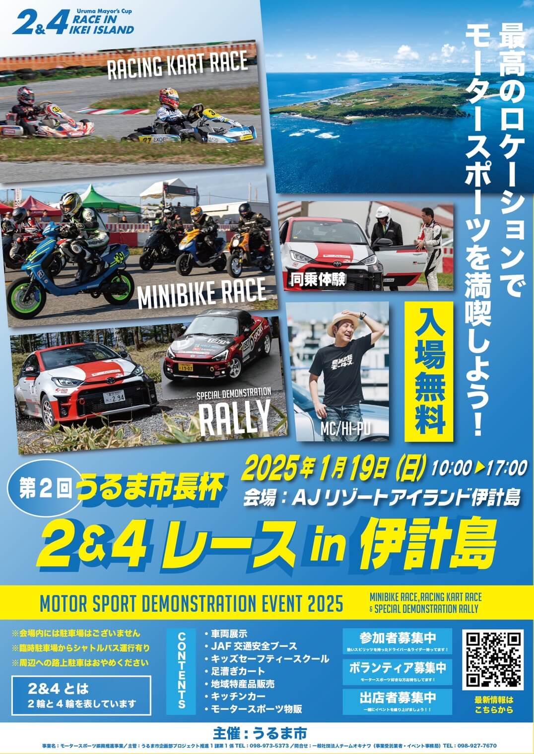 2025年1月19日(日)、うるま市のある伊計島温泉 AJリゾートアイランド伊計島にて「第2回 うるま市長杯 2&4 レース in 伊計島」が開催される。
