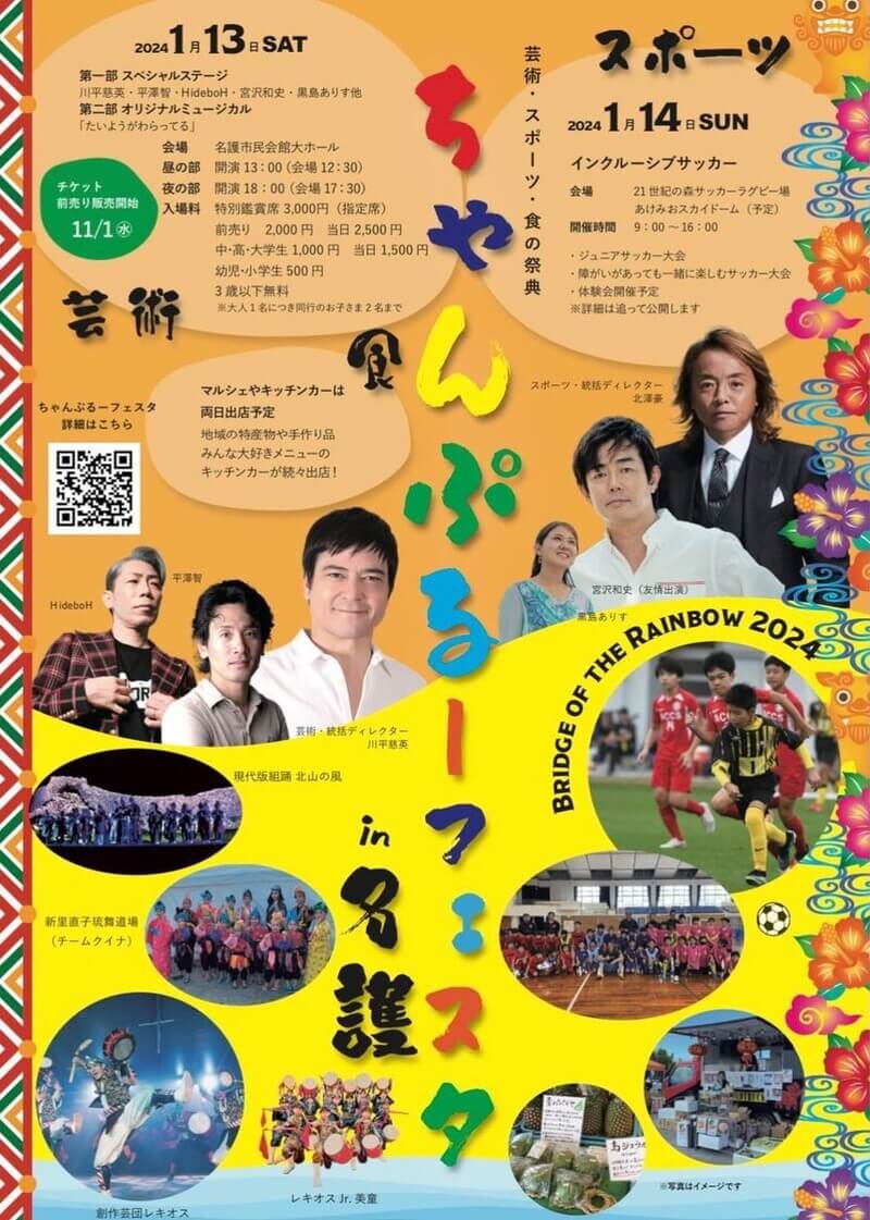 2024年1月13日(土)・1月14日(日)、名護市で「ちゃんぷるーフェスタ in 名護」が開催される。芸術・スポーツ・食を、性別や年齢、障がいの有無、環境に関係なく楽しむためのイベントだ。