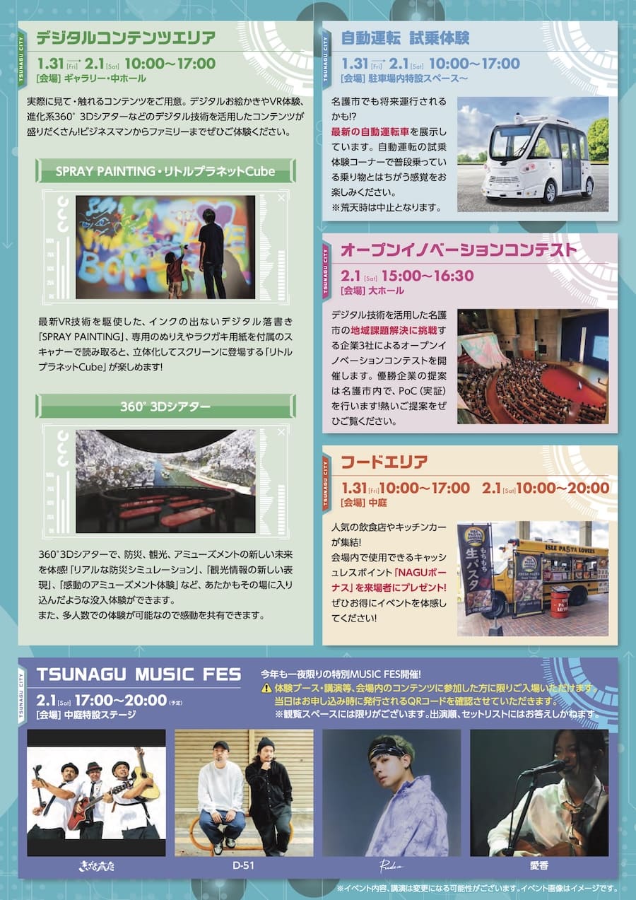 2025年1月31日(金)・2月1日(土)、名護市民会館にて「TSUNAGU CITY 2025 in NAGO」が開催される。デジタル技術を通じて名護の未来を聞いて・見て・感じる体感型イベントだ。
