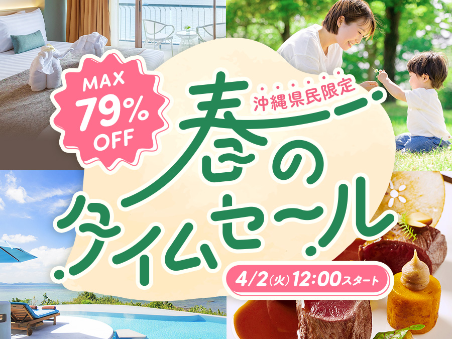 沖縄県民のおでかけを応援するサイト「ちゅらとく」では、2024年4月2日(火)12時~5日(金)17時までの77時間限定で「春のタイムセール」を開催する。