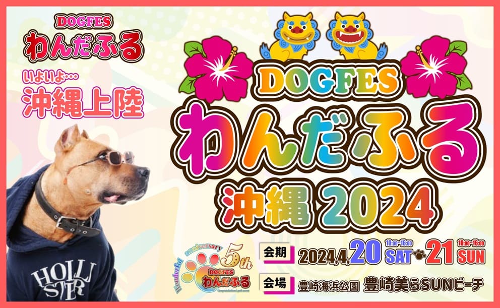 2024年4月20日(土)・21日(日)、豊見城市にある豊崎海浜公園美らSUNビーチにて、ドッグイベント「わんだふる 沖縄2024」が開催される。