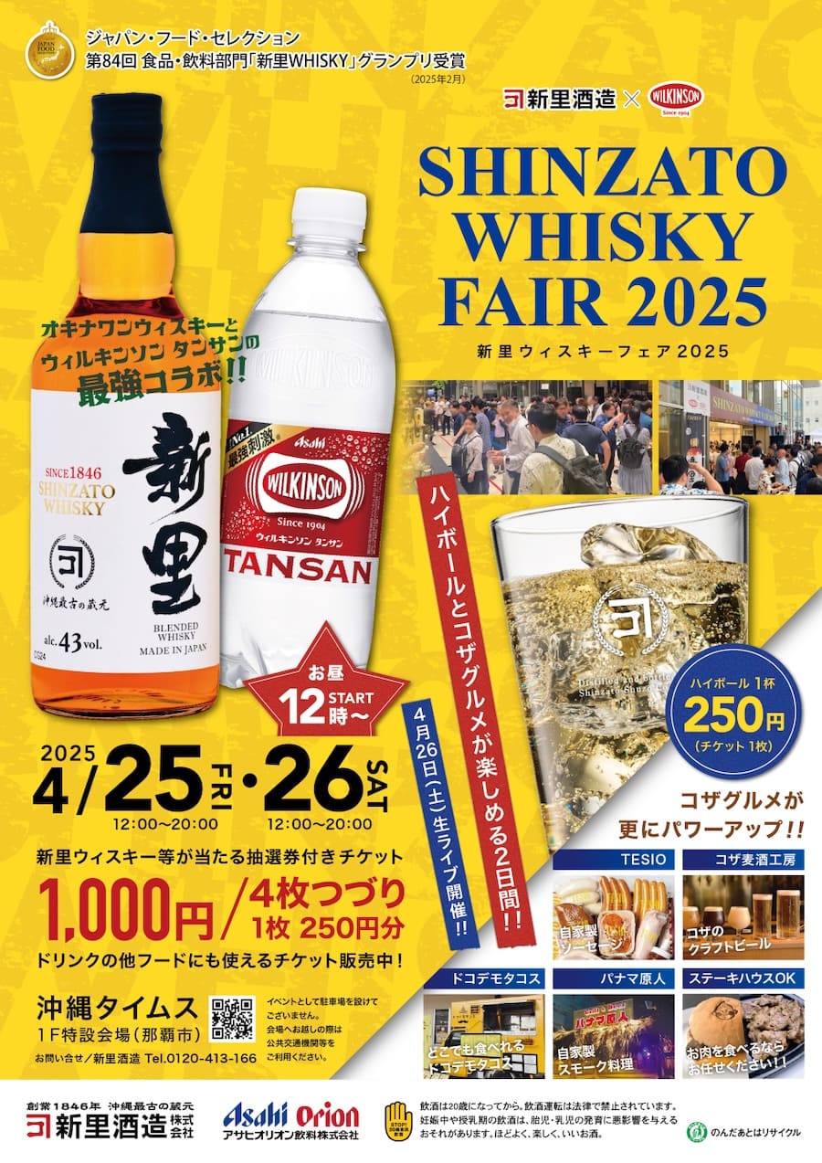 2025年4月25日(金)・4月26日(土)の2日間、那覇市の沖縄タイムス1階の特設会場にて、新里酒造が主催する「SHINZATO WHISKY FAIR 2025」が開催される。